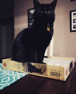 Cats believe humans should never focus on anything that doesn’t involve them. Twilight, for example, has single-pawedly declared war on my jigsaw puzzles. Even after I invested in a special fold-up, cat-proof board, she found a way around it. Her method? Sitting proudly on the puzzle while I work, carefully picking up pieces in her mouth, and tossing them to the floor like tiny cardboard grenades. If I dare to move her, she protests loudly — and sometimes even bites me! Clearly, Twilight’s message is simple: puzzles are cancelled, and all attention belongs to the cat.