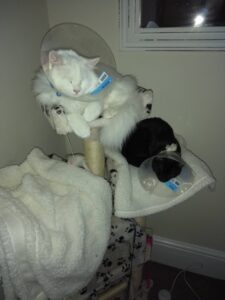 Cats believe the dreaded cone is undeniable proof of human betrayal. Snowflake and Twilight once ended up in matching cones after their vet trips — and let’s just say, they were not impressed. According to them, the cone exists only to humiliate cats, block their dignity, and earn them unlimited sympathy treats. If you dare to laugh, prepare yourself for the ultimate cat side-eye.