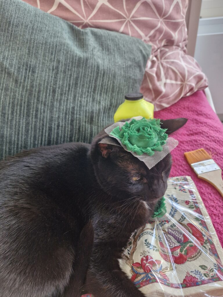 “Proof that fashion is serious business — Twilight models her green fascinator with full runway attitude. Vogue, but make it feline.”