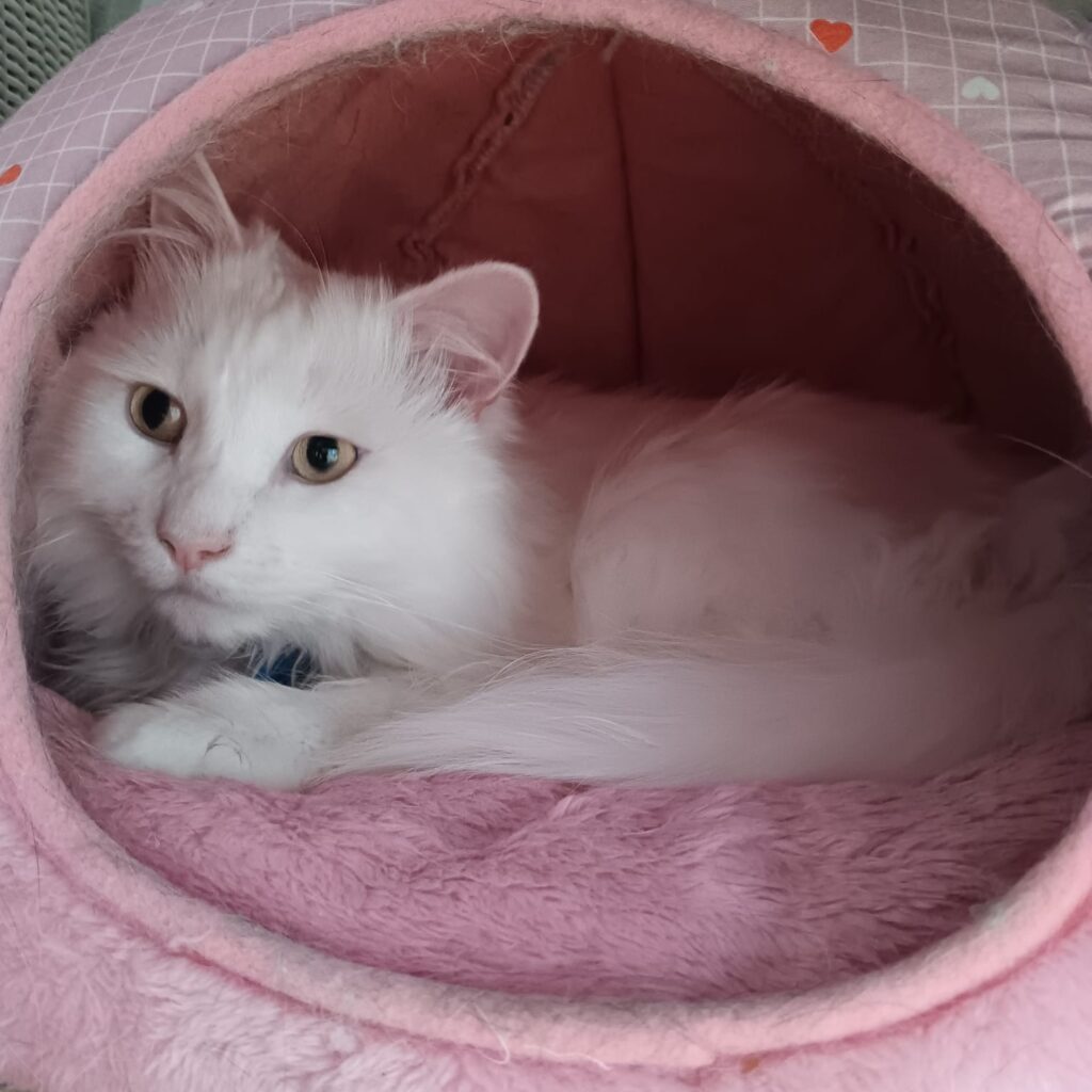 “Creating a cozy spot for your cat means finding peaceful, familiar areas where they can truly unwind — just like Twilight and Snowflake do in their favorite nooks.”