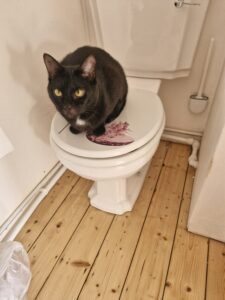 So if you hear persistent meowing or paw-scratching outside the bathroom, it’s not just impatience — it’s feline outrage.